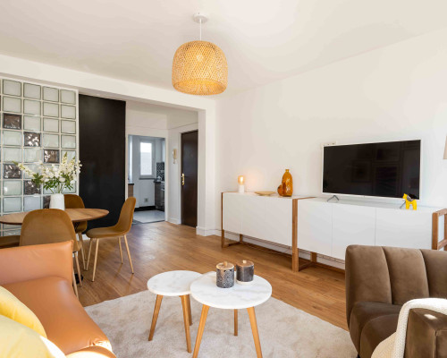 Il se compose de quatre chambres meublées, d'un séjour avec salle à manger, d'une cuisine équipée, d'une salle de bains et d'un WC. L'appartement a été entièrement équipé et meublé, et quand vous passerez le pas de la porte, vous serez chez vous.