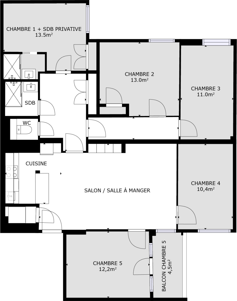 Dans ce joli co-living vous pourrez choisir l'une des 5 chambres meublées et décorées, il y a également deux salles de bains et un wc. Nos équipes ont aménagé un bel espace commun et convivial, avec une cuisine entièrement équipée ouverte sur le salon et la salle à manger. Vous n'aurez qu'à poser vos valises !
