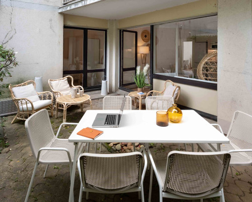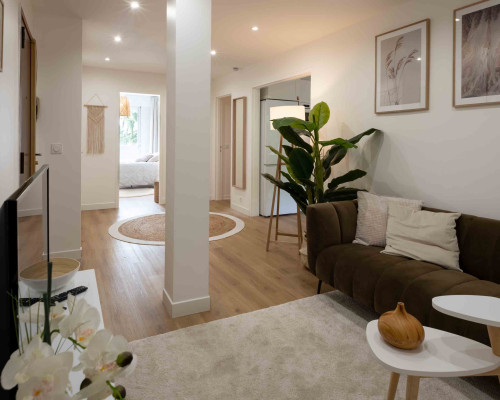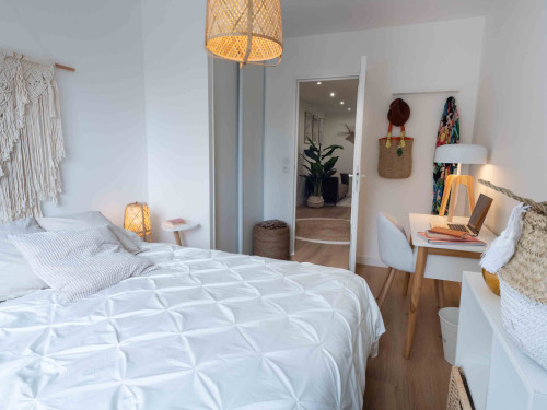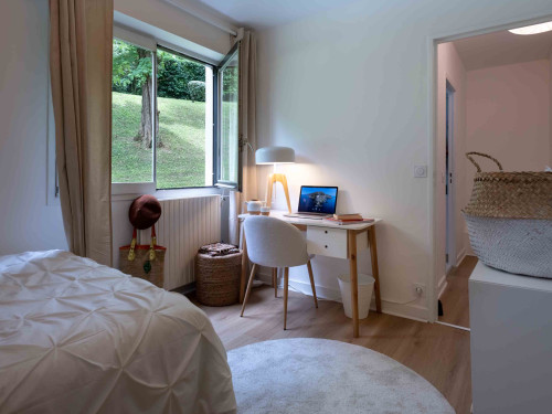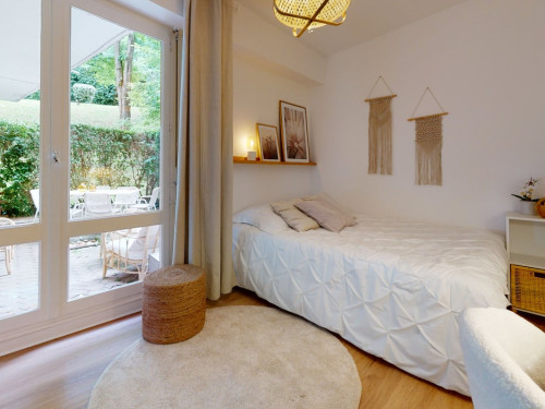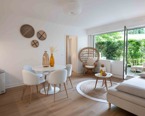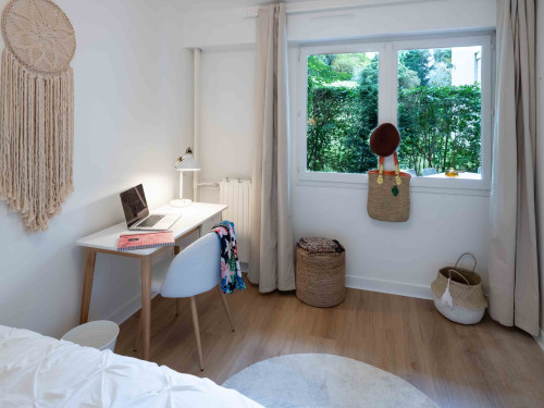Joli appartement refait récemment de 110m2 en rdc avec un jardin privatif. Il est composé de 5 chambres et deux salles d'eau. Vous pourrez profiter d'une belle pièce à vivre avec une cuisine équipée ainsi qu'un coin salon qui s'ouvre sur le jardin. L'appartement est entièrement équipé et meublé.