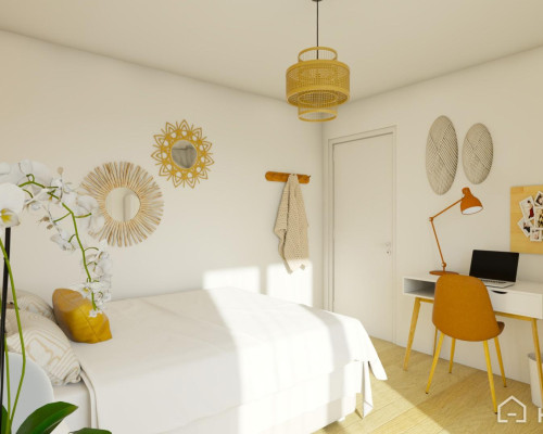 Réserver ma chambre Chat WhatsappChambre se composant d'un lit double avec draps et oreillers, d’un bureau avec chaise, placard penderie et serrure privative
